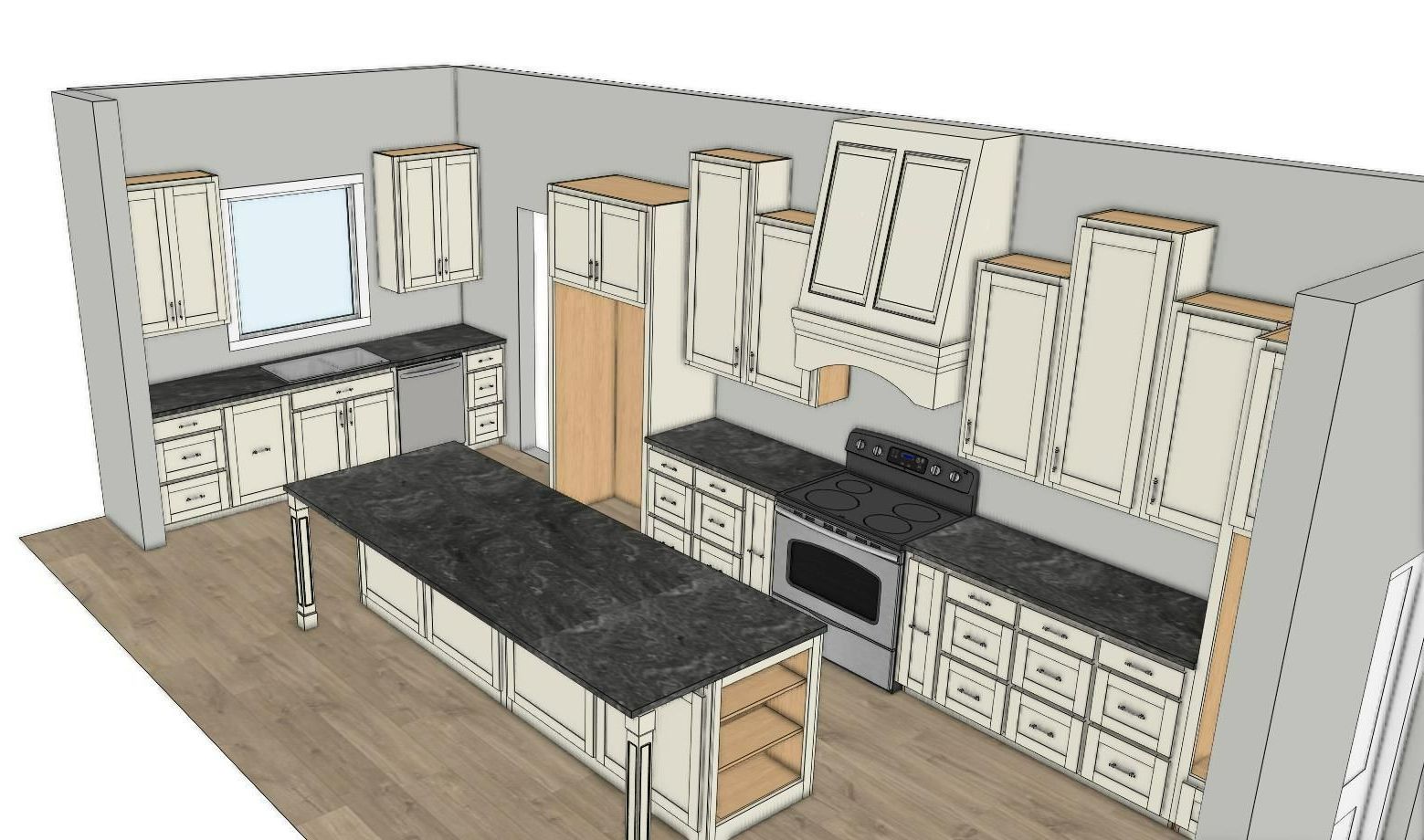 Email or drop off your blueprints to the shop. The guys will take the plans and design a basic set of cabinets for you and draw up a rough estimate. You will then receive and email with the estimate as well as the 3D renderings for the cabinets that were designed. At this point you can make any changes that you would like. Such as, replacing doors with pull out drawers, removing cabinets, etc. Once your home has the plumbing in place we can come out and take more accurate measurements and revise the proposal accordingly. When you are ready to move forward, we will have you come into the office where you will look over your plans again and we will answer any questions that you may have. You will finalize your cabinetry and sign off on the design and then you are ready for production.