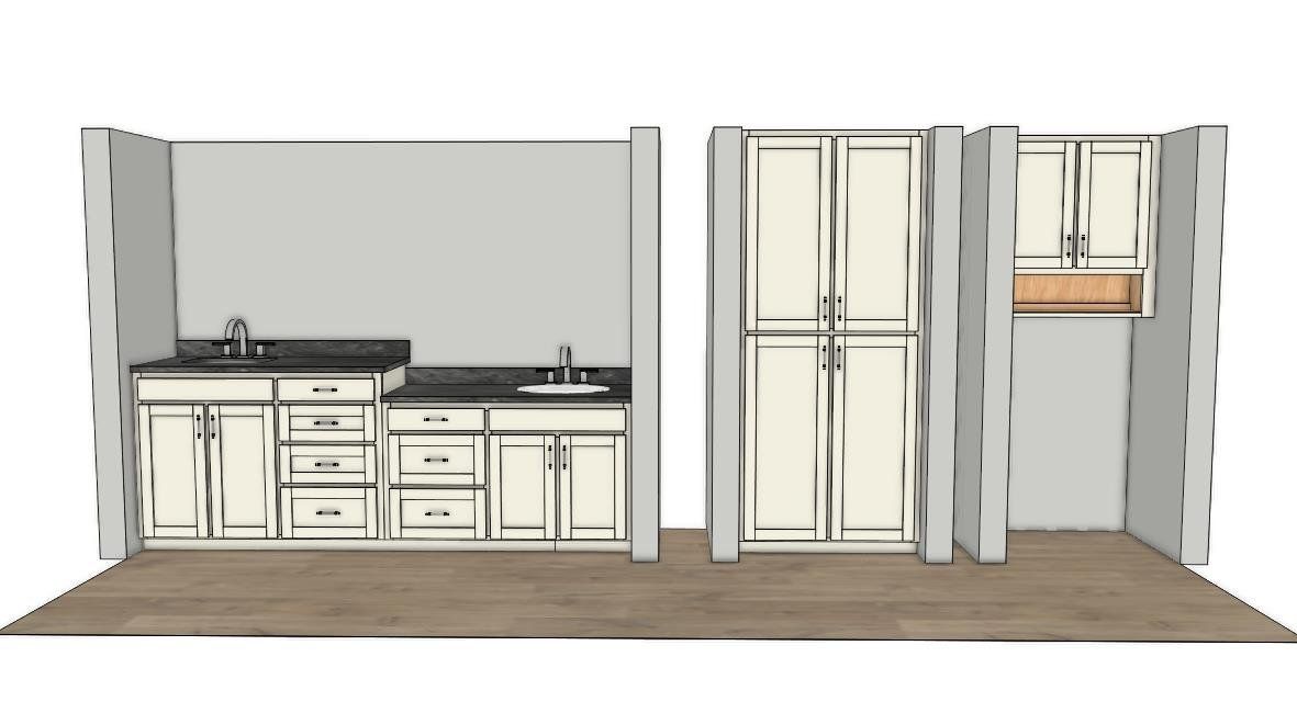 Email or drop off your blueprints to the shop. The guys will take the plans and design a basic set of cabinets for you and draw up a rough estimate. You will then receive and email with the estimate as well as the 3D renderings for the cabinets that were designed. At this point you can make any changes that you would like. Such as, replacing doors with pull out drawers, removing cabinets, etc. Once your home has the plumbing in place we can come out and take more accurate measurements and revise the proposal accordingly. When you are ready to move forward, we will have you come into the office where you will look over your plans again and we will answer any questions that you may have. You will finalize your cabinetry and sign off on the design and then you are ready for production.